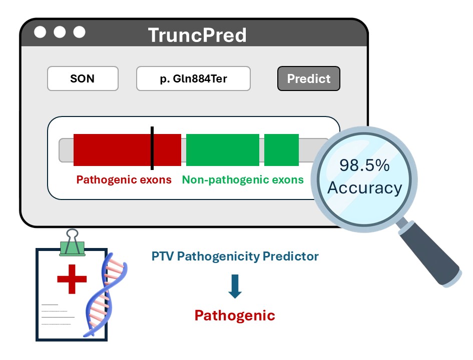 To translate these findings into clinical practice, we developed TruncPred (available at https://rarevariants.org/TruncPred), a web-based tool that integrates these annotations to predict the pathogenic potential of truncating variants and provide interactive visualization of their protein context.